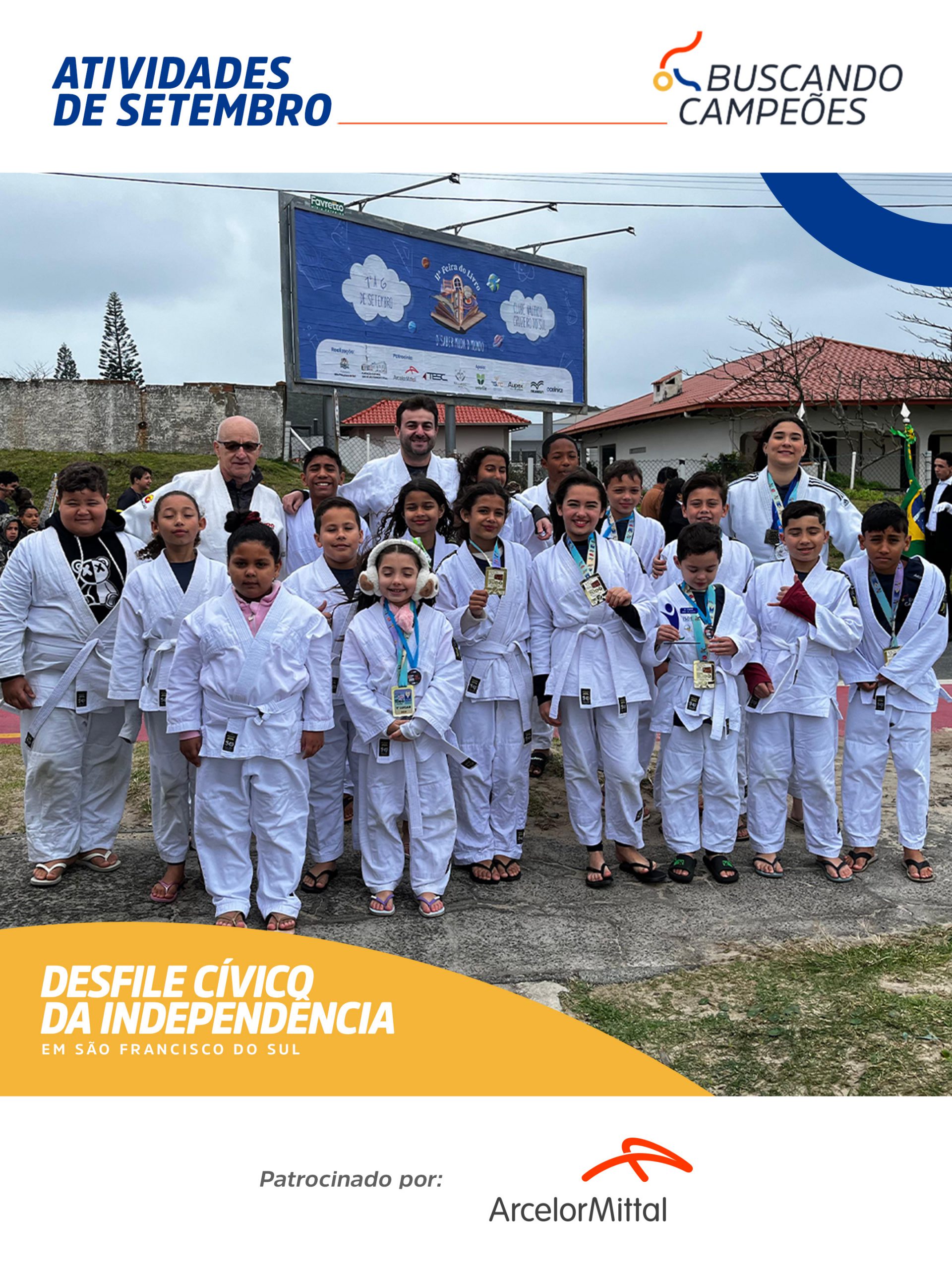 Além de tudo isso a galera do projeto Buscando Campeões, participou do desfile cívico de 7 de Setembro e fez apresentação de judô na semana Valores da ArcelorMittal, que patrocinadora desse projeto do ISBE.